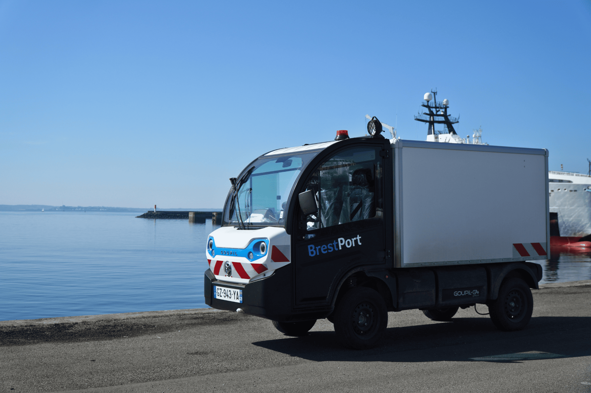 On a port site, the safety of technical teams is a key priority. The Goupil G4 vehicles deployed at the Port of Brest have been specially configured to meet these requirements: